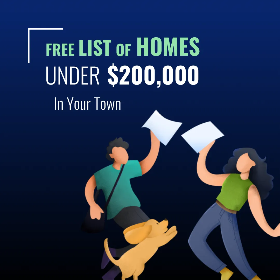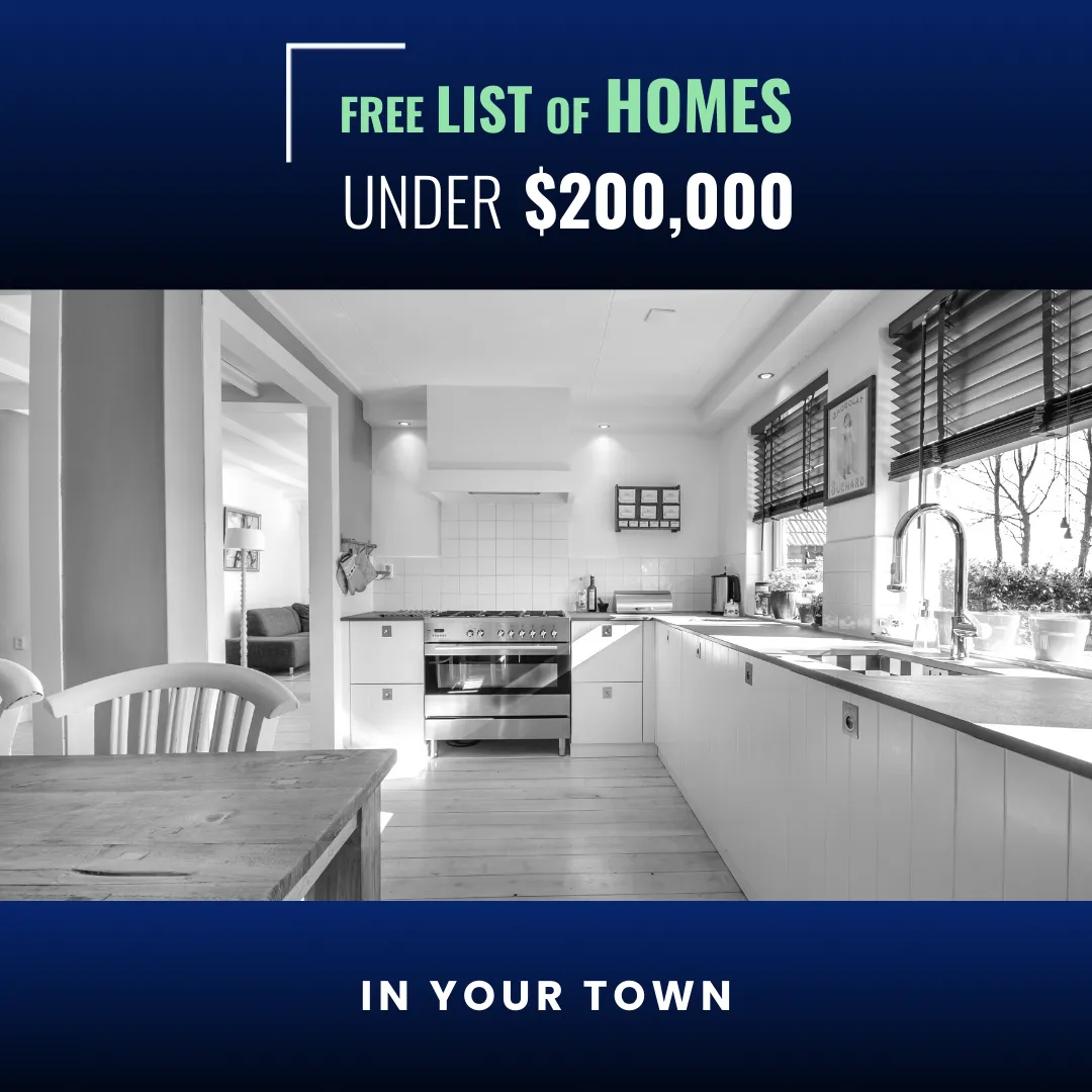 Get your hands on a FREE list of the Best Homes Priced Under 🔻💰 $200,000 within 🚗 15 mile radius of Your Town 👇